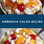 If you have leftovers, simply cover the Ambrosia Salad tightly with plastic wrap or a lid and store it in the refrigerator. It will keep best for up to 2 days, though the texture may soften slightly as the marshmallows and fruit continue to absorb moisture.