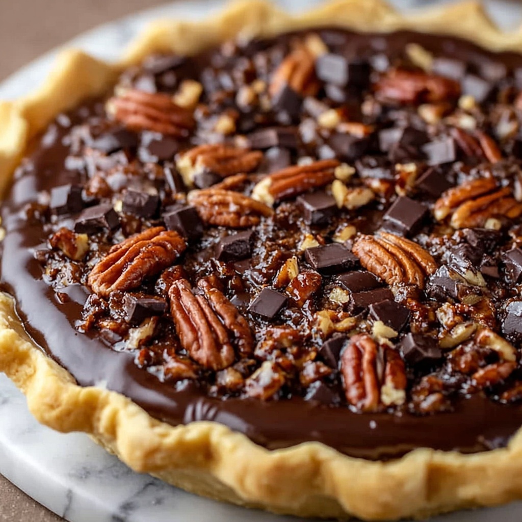 This pie is rich and satisfying on its own, but if you want to serve it with something else, consider a scoop of vanilla ice cream or a refreshing berry compote. The tartness of fresh berries cuts through the sweetness perfectly, creating a balanced dessert experience.