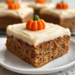 Delicious and moist carrot cake bars topped with a rich browned butter cream cheese frosting. These easy-to-make sheet pan bars combine the warm flavors of cinnamon and nutmeg with grated carrots, pineapple, and optional walnuts, perfect for dessert or a sweet snack.