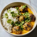 This flavorful Chicken Meatball Curry features tender ground chicken meatballs simmered in a rich, spiced tomato and coconut milk sauce. Infused with classic Indian spices like garam masala, cumin, and coriander, this comforting dish is perfect served with rice, naan, or cauliflower rice. It’s a delicious, gluten-free option when using gluten-free breadcrumbs, delivering a balanced meal full of protein and aromatic flavors.