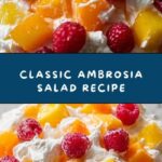 Classic Ambrosia Salad is a creamy, refreshing dessert made with mandarin oranges, pineapple chunks, marshmallows, shredded coconut, and a rich whipped cream dressing. This easy-to-make fruit salad is chilled to blend flavors perfectly and makes a delightful side dish or dessert for gatherings and potlucks.