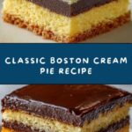 This Classic Boston Cream Pie features two tender, buttery cake layers filled with creamy pastry custard and topped with a rich chocolate glaze. It’s a timeless dessert that’s perfect for any occasion, combining soft cake, velvety filling, and glossy chocolate in every bite.