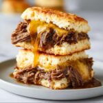 This delicious French Dip Biscuit Bake combines warm, tender shredded beef with melted provolone cheese on flaky, garlic butter brushed biscuits. Slow-cooked beef au jus adds rich flavor, making it perfect for a comforting meal or entertaining guests.