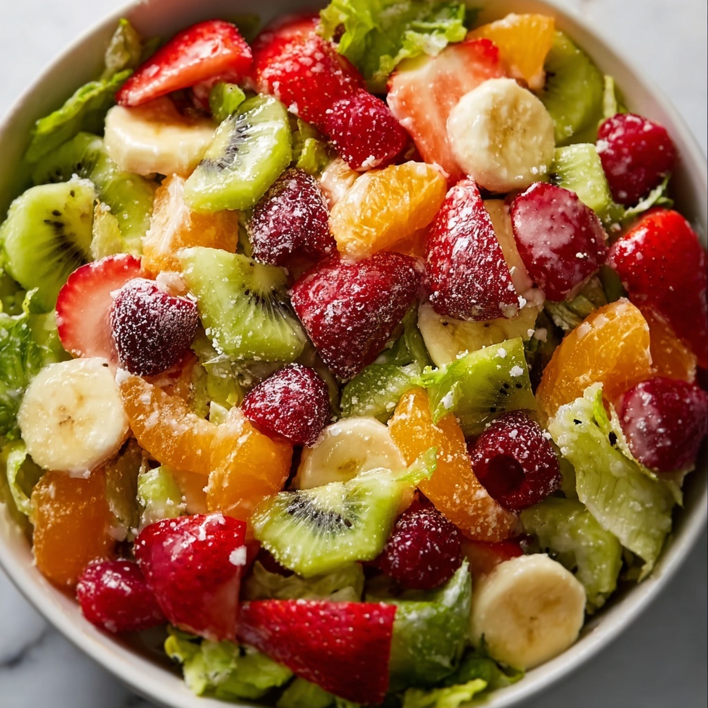 This salad pairs wonderfully with light brunch items like yogurt and granola, a side of cottage cheese, or even as a refreshing dessert alongside a slice of angel food cake. Its natural sweetness and vibrant colors make it versatile with many meals.