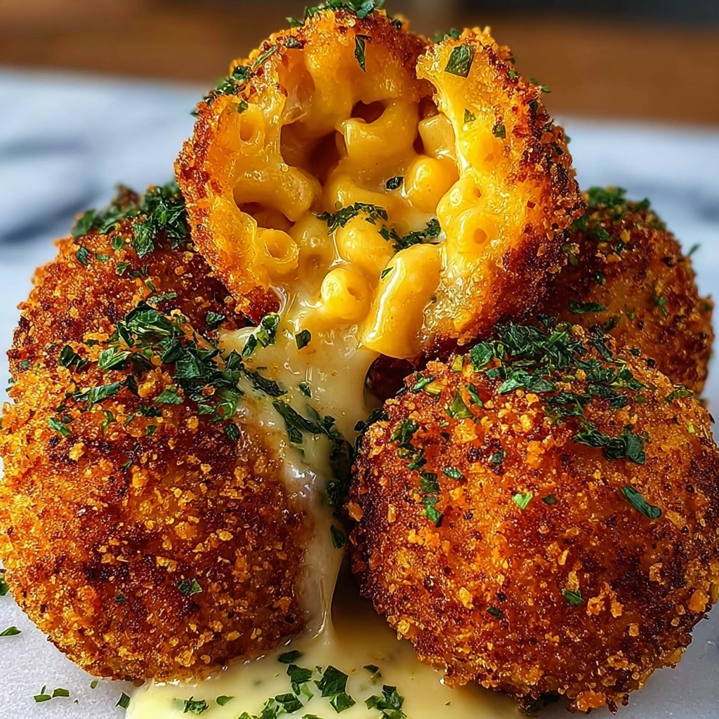 Top your fried mac and cheese balls with fresh herbs like chopped parsley or chives to add a pop of color and freshness that contrasts beautifully with the rich cheese. A light drizzle of spicy mayo or a sprinkle of flaky sea salt can also elevate each bite to something extraordinary.