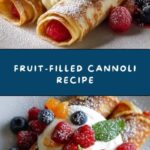 A delightful recipe for Fruit-Filled Cannoli featuring crispy homemade shells filled with a creamy ricotta and mascarpone mixture, topped with fresh mixed fruits and garnished with powdered sugar and mint leaves. Perfect for a refreshing and elegant dessert.