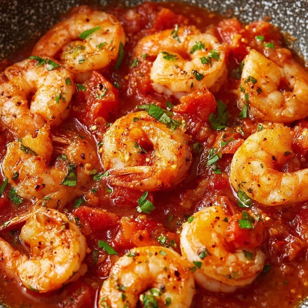 This Garlic Shrimp in Tomato Sauce recipe offers a quick and flavorful seafood dish featuring succulent shrimp cooked in a rich tomato and garlic sauce with herbs and spices, perfect to enjoy over pasta, rice, or with crusty bread.
