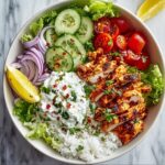 Now the fun part: layering your bowl! Start with a generous base of rice or quinoa. Neatly arrange the fresh veggies and sprinkle the feta on top. Add your sliced chicken in, then don’t be shy with the tzatziki—spoon a good amount over the entire bowl. For a finishing touch, drizzle a little extra olive oil and lemon juice for brightness and shine. Serve immediately and prepare to savor the freshest tastes of the Mediterranean in one bowl.