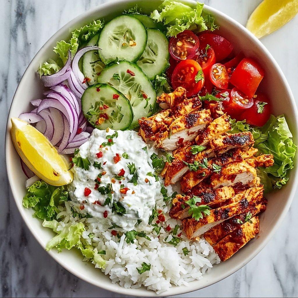 - Assemble the Bowls: Fill bowls with rice or quinoa, arrange vegetables and feta on top, add sliced chicken, and spoon tzatziki generously over everything. Drizzle with olive oil and lemon juice if desired. Serve immediately and enjoy.