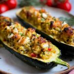 This Stuffed Zucchini pairs wonderfully with crusty artisan bread to soak up all the luscious juices. If you want to keep it light and healthy, a crisp green salad with a lemon vinaigrette is perfect for complementing the Mediterranean Stuffed Zucchini Recipe without overpowering it. For heartier meals, consider serving with roasted potatoes or a simple quinoa pilaf.
