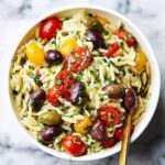 - Orzo pasta: Small rice-shaped pasta that cooks quickly and holds the dressing beautifully.