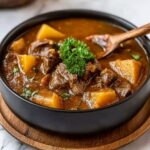 Set your slow cooker to low and let the beef simmer for 6 to 8 hours, or if short on time, cook on high for 3 to 4 hours. The long, slow cooking breaks down the beef and lets the flavors develop together into a harmonious, melt-in-your-mouth experience. You’ll know it’s ready when the beef is tender, and the potatoes are cooked through.