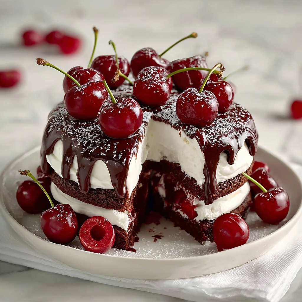 Fresh cherries and chocolate shavings aren’t just beautiful; they add layers of flavor and texture that complement this dessert perfectly. A light dusting of powdered sugar or even a few mint leaves can also refresh the look and add a hint of aroma.
