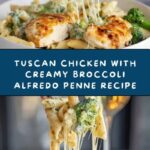 A delicious and creamy Tuscan Chicken with Broccoli Alfredo Penne combining tender seasoned chicken breasts, sun-dried tomatoes, fresh spinach, and a rich Parmesan cream sauce tossed with perfectly cooked penne pasta. This flavorful and comforting dish is ready in just 35 minutes, making it ideal for a satisfying weeknight dinner.