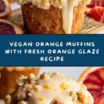 Delightfully zesty and moist vegan orange muffins topped with a fresh orange glaze and a crumbly orange-scented topping, perfect for a vibrant breakfast or snack.