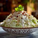 Watergate Salad is a light and creamy cabbage-based salad featuring finely shredded cabbage combined with a whipped heavy cream dressing, lightly tangy with vinegar or lemon juice. This refreshing side dish is perfect for a quick, simple, and airy salad option that pairs well with various meals or serves as a delightful snack.